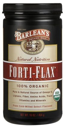 Forti-Flax 16 oz Supplement 100% ORGANIC PURE & NATURAL SOURCE OF OMEGA-3, LIGNANS, FIBER, AMINO ACIDS, TRACE VITAMINS AND MINERALS FROM COLD-MILLED SELECT FLAXSEED Supplement Facts Serving Size: 2 Tbsp Servings Per Container: 30 Amount Per Serving: Total Fat 5 g Saturated Fat 0 g Polyunsaturated Fat 3.5 g Monounsaturated Fat 1 g Cholesterol 0 mg Sodium 0 mg Total Carbohydrate 6 g Dietary Fiber 3 g Insoluble Fiber 2 g Soluble Fiber 1 g Trace Vitamins Vitamin C 75 mcg Vitamin B-1 (Thiamin) 79 mcg Vitamin B-2 (Riboflavin) 34 mcg Vitamin B-6 (Pyridoxine HCl) 90 mcg Niacin 480 mcg Pantothenic Acid 85 mcg Folic Acid 16 mcg Tocopherols (Vit-E) Alpha-Tocopherol 8 mcg Delta-Tocopherol 6 mcg Gamma-Tocopherol 4 mcg Trace Minerals Calcium 30 mg Copper 150 mcg Iron 750 mcg Magnesium 60 mcg Manganese 30 mcg Phosphorus 93 mg Potassium 120 mg Zinc 750 mcg Amino Acids (Protein) 2645 mg Alanine 125 mg Arginine 270 mg Aspartic Acid 270 mg Cystine 30 mg Glutamic Acid 580 mg Glycine 170 mg Histidine 60 mg Isoleucine 115 mg Leucine 170 mg Lysine 115 mg Methionine 40 mg Phenylalanine 130 mg Proline 100 mg Serine 130 mg Threonine 100 mg Tryptophan 50 mg Tyrosine 60 mg Valine 130 mg Essential Fatty Acids Omega-3 (alpha-linolenic acid) 3000 mg Omega-6 (linolenic acid) 1000 mg Monounsaturated Fatty Acids Omega-9 1000 mg Phyto-Nutrients Lignans (SDG) 110-300 mg Phenolic Acids 100 mg Flavonoids 5 mg Phytic Acid 320 mg INGREDIENTS: Freshly cold-milled, 100% organic, pesticide and herbicide free, select flax seeds.
