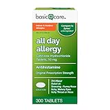 Compare to the active ingredient in Benadryl allergy tablets. Basic Care Allergy Relief offers effective multi-symptom relief in easy to swallow tablets. Just one dose provides temporary allergy Relief of runny nose, sneezing, itching of the nose or throat and itchy, watery eyes. Also temporarily relieves runny nose and sneezing due to the common cold. Each tablet contains 25 mg of diphenhydramine HCl, an antihistamine. Gluten free.