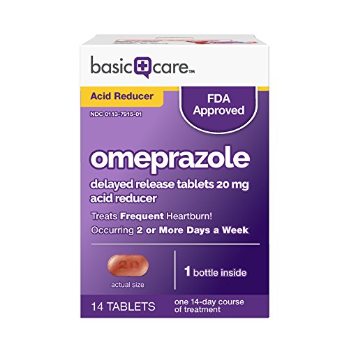 Basic Care Omeprazole Delayed Release Tablets Acid Reducer, 14 Count