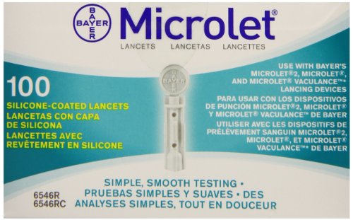 Bayer microlet 100 count lancets are silicone-coadted for simple smooth testing. Choose from five lancing depths. Added control lets you use smallest blood drop necessary.