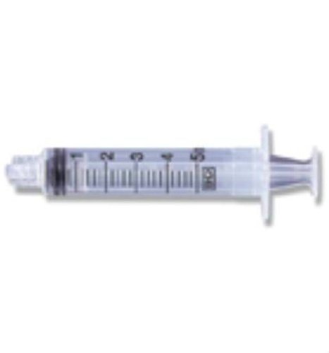 5mL Luer-Lok syringe only, sterile, single use. Clear barrel with bold scale markings, tapered plunger rod for ease of aspiration, positive plunger rod stop, and BD Luer-Lok thread for increased secure connection. Packaging is clearly labeled latex free.