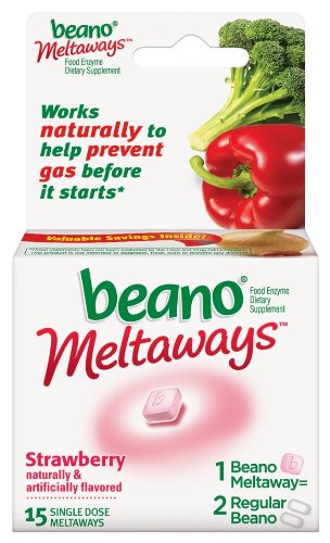 Beano strawberry meltaways contain a natural enzyme that breaks down the complex carbohydrates found in many foods, making them easier to digest so they don’t cause gas. beano meltaways work naturally to help prevent gas from beans, vegetables, whole grains and other healthy foods.