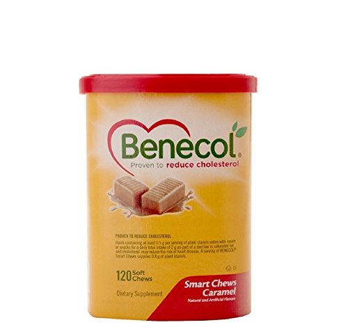 Benecol® Smart Chews are a delicious, convenient, and safe way to help lower cholesterol. Each soft chew contains just 20 calories, while also containing 0.7 grams of plant stanol esters, an ingredient proven to reduce cholesterol. Available in a delicious creamy caramel flavor, the chews are individually wrapped, and come in a convenient, 120-count resealable pouch. Take one to two great-tasting soft chews twice a day with meals or snacks and start lowering your cholesterol in as little as two weeks. Only available online, each chew provides one serving and and four grams of carbohydrates, and they can be used by those taking statin medication for additional cholesterol reduction.