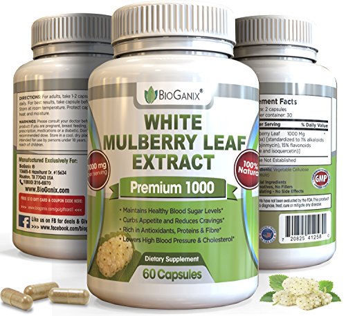- ★ BEST 100% NATURAL WHITE MULBERRY EXTRACT SUPPLEMENT - BioGanix White Mulberry Leaf Extract Premium 1000mg! [500mg per pill, 1-2 Veggie Capsules per serving - Take with 8 Oz glass of water as Dr recommends]