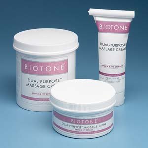 Biotone Dual Massage 128 ozCombines the benefits of both oil and lotion. Dual-purpose, silky massage cream has a rich, smooth consistency for even application. Remains effective without frequent re-application. Softens and moisturizes skin without a greasy feel. Available in a 7 fl. oz. (207ml) tube, 14 fl. oz., 36 fl. oz. and 1 gallon (414ml, 1064ml and 3.8 liter) jars. Product photo may not exactly match the product offered for sale. Please refer to the product description.