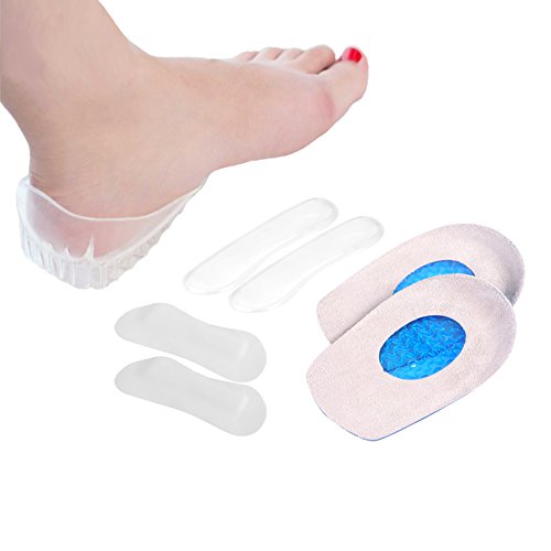The 8 Piece Heel Pad Kit is an orthotic device for improving the health of your feet. The Gel Heel Cups are specially formulated polymer which very is light, soft and resilient. It provides the ultimate in shock absorption. Use heavy duty heel cups for high impact activities. It is designed to tolerate heavy weights. Research indicates that high-performance gel heel cushions often relieve sore, aching heels more effectively than expensive orthotics. These durable, medical-grade heel cushions absorb forces that aggravate heel pain and put an extra load on joints. These technologically advanced cushions cradle the heel and provide additional relief to painful areas relieving heel pain. Fabric Heel Grips pads are unisex heel pad grips. Padded grips keep your heels from slipping out of your shoes. It helps prevent blisters caused by abrasion when the back of your shoes are loose. It helps shoes fit better. It is made of durable material, comfortable soft padding and a strong self-adhesive grip. It is designed to alleviate rubbing and friction. Gel Heel Grips are similar to the fabric heel grips. They are slimmer and fit better in smaller shoes. They have self-adhesive back and can stick to the back of your shoes. The gels are transparent and will match your shoe's color.