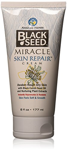 6oz (177ml) - Amazing Herbs has harnessed the incredible healing and soothing powers of Black Cumin Seed oil. Rich in EFA's, this remarkable natural ingredient has been used for centuries to promote healthy skin and restore its natural balance. Formulated with nurturing plant extracts, Black Seed Miracle Skin Repair cream helps soothe irritated, rough, dry skin. Natural moisturizers instantly rejuvenate and help strengthen the skin's natural barrier to keep skin feeling smooth and soft all day.