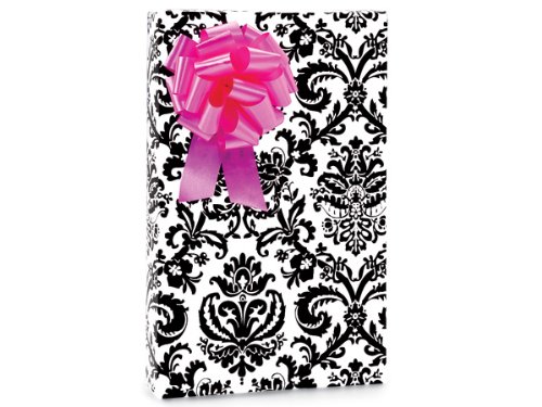Gloss BLACK & WHITE DAMASK PAISLEY FLOURISH PRINT commercial wrapping paper - used in department stores!! It will come to you ROLLED not folded flat, so no crease marks. Measures 24 inches wide by 16 feet long - that's 32 square feet of YUMMY!! Wraps approx. 8-10 shirt sized gifts! MAKE SURE YOUR GIFT PAPER HAS THE PREMIUM QUALITY GIFT WRAP PAPER LABEL ON WHEN YOU RECEIVE IT OR YOU MAY BE GETTING LOWER QUALITY GIFT WRAP FROM ANOTHER SELLER. PREMIUM QUALITY GIFT WRAP PAPER GUARANTEES THE PREMIUM QUALITY OF THIS GIFT WRAP - REMEMBER LOOK FOR THE LABEL!! EACH ROLL IS INDIVIDUALLY WRAPPED IN CELLOPHANE FOR PROTECTION!