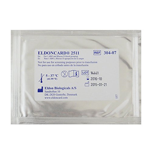 Quantity: 1 Blood Typing Test Kit This fast, easy to use blood typing kit contains everything required to determine blood group and RH factor using a whole blood sample obtained from a finger prick without the need for separate reagents or laboratory training. The EldonCard is a patented test card device that comes specially treated and impregnated with dried antibody sera Anti-A, Anti-B and Anti-RH used universally for determining Blood type by the forward typing method. Creates a Permanent Blood Type Record Card for medical histories and emergencies. The EldonCard blood typing kit is also excellent for classroom instruction and other educational applications. Each kit performs only 1 test. There have been no recalls or quality failures logged for this product by the FDA or any other regulating authority since the inception of the product some 15 years ago. We are not responsible for procedure errors or failure to follow instructions etc. The instructions are very clear but a new consumer may fail to follow instructions exactly, be unfamiliar with routine testing procedures or be unfamiliar with reading test results. If an error is made in doing a test like pre-triggering an automatic lancet rendering it unusable, adding too much water to the reagents etc by not following instructions, we are not responsible.