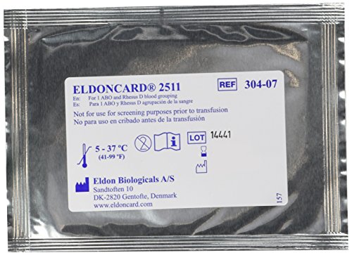 EldonCard Blood Type Kit is a fast, easy to use blood typing kit contains everything required to determine blood group and Rh factor using a whole blood sample obtained from a finger prick without the need for separate reagents or laboratory training. The EldonCard is a patented test card device that comes specially treated and impregnated with dried antibody sera Anti-A, Anti-B and Anti-Rh used universally for determining Blood type by the forward typing method. Creates a Permanent Blood Type Record Card for medical histories and emergencies.