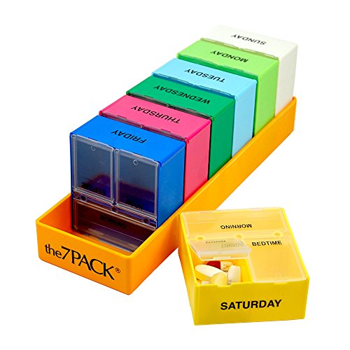 Color coded for each day Each compartment holds what you need for the day. Can be used individually. Easy for travel. Lids will not open accidentally. Dishwasher safe for cleaning.