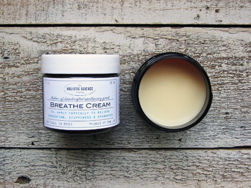 A powerful, vaporizing chest rub that relieves coughs, congestion, stuffiness and headaches due to allergies, colds/flu or sinus infections that can be rubbed on your chest, back, forehead, ear lobes and under/around the nose. Made with moisturizing ingredients such as shea butter and grapeseed oil to relieve dry, cracked skin caused by excessive nose-blowing. Therapeutic grade essential oils such as Eucalyptus, Peppermint, Lavender, Niaouli and Tea Tree Oil assist in opening nasal passages, clear the mucous membrane and soothe the senses for a restful sleep.