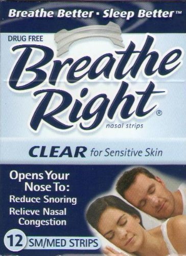 You will receive 12 of the 12 count boxes.Clear Small Medium Sensitive Skin Nasal congestion (or a blocked nose) can make you breathe through your mouth instead of your nose which may cause snoring and a bad night's sleep for you and your partner. Breathe Right Nasal Strips gently open your nasal passages helping you to breathe better by providing temporary relief from nasal congestion and stuffiness which can be caused by colds and allergies. Each drug-free nasal strip consists of flexible "spring-like" bands that when placed correctly across the nose, gently opens the nasal passages to make breathing easier