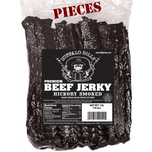 - 16oz of our classic Buffalo Bills Premium Hickory Beef Jerky in random size pieces