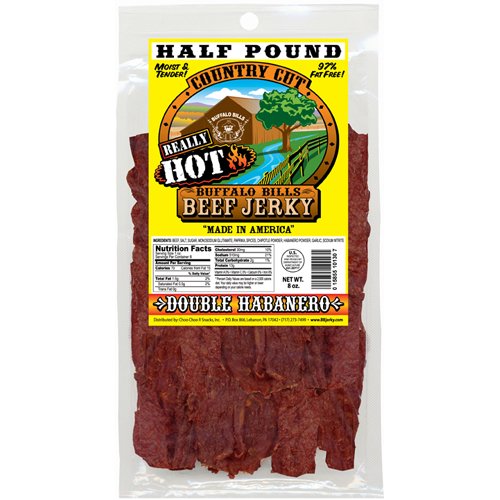 - One half pound of our Double Habanero flavor Buffalo Bills Country Cut Beef Jerky