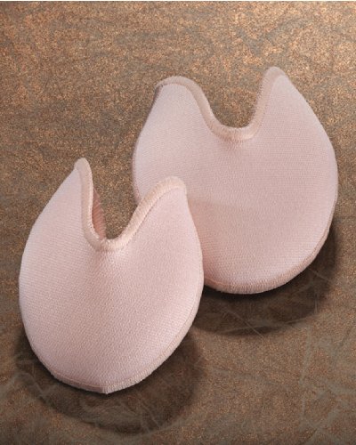 Reversible toe pad. Crescent-shaped pad with less padding under the metatarsal area. A thin layer of gel material inside two pieces of fabric creates a comfortable pouch. Cushioning covers toe and bunion areas only. Deep cut vamp matches line of the pointe shoe. Sleek shape hugs the foot and keeps pads from sliding or bunching. Soft seams flatten on pointe. Proprietary gel formulation helps prevent 'wear spots' or 'bottoming out'. Hand wash with mild detergent. Allow to air dry completely. 2 per package.