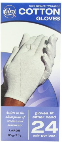 Dispenser box with 24 pair of large cotton gloves. 100% cotton. Washable. Reusable.