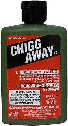 The only product on the Market that RELIEVES Itching and REPELS Chiggers (Redbugs)