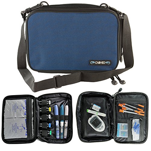 The ChillMED Elite is perfect for daily or weekly use, and great for overnight or shorter trips. It comes with two re-freezable 6 oz Cold-Pax brand gel packs and keeps medications cold for 8 to 12 hours. The exterior of the bag includes a zippered mesh pocket which accommodates five different sizes of Frio cooling wallets. Each side of the bag has extended zipper pulls with 2 no-snag zippers to allow better access whether you are left or right handed. Closed cell foam insulation throughout the entire bag means more protection and longer cooling times. The cooling side of the bag includes elastic straps for holding 5 vials and 3 pens. The non-chilled side provides 4 zippered mesh pockets of varying sizes for the rest of your supplies. Easy to carry handle makes on-the-go use a breeze, or snap on the optional shoulder strap for more comfortable transportation. ChillMED Elite, now available in Blue, Burgundy, and Slate Gray. Dimensions: 10" x 7" x 3"