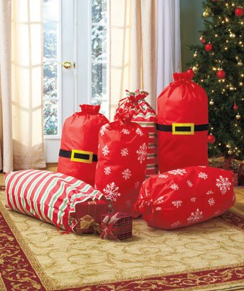 - Set of 6 reusable bags includes: 2 Santa's belt design. 2 Striped pattern. 2 Snowflake pattern