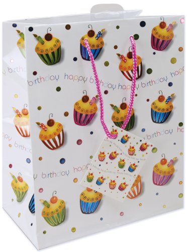 Cindus Foil Gift Bags, 10-1/2 by 5-3/8 by 13-Inch, Birthday Cupcake