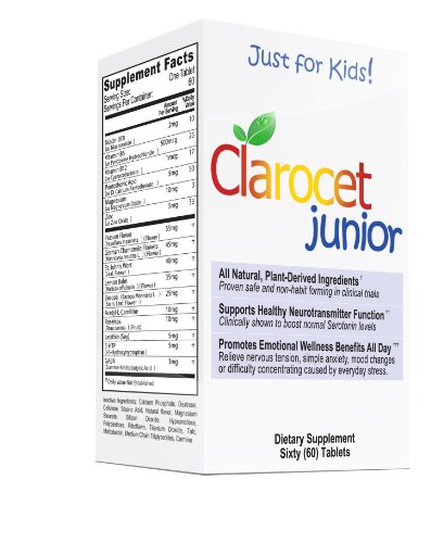 Clarocet Junior is a biologically-based Complementary and Alternative Medicine (CAM) that is specially formulated for children between the ages of 7 and 13. When taken on a daily basis, the active ingredients in Clarocet Junior are clinically shown to support relaxation, emotional well-being, as well as focus, mental sharpness, attention span, concentration and other healthy cognitive functions. With continued use for just 2 to 6 weeks, Clarocet Junior can help to support a healthy neurotransmitter balance.
