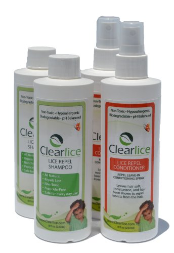 The Clearlice Head Lice Repellent Kit is safe for every day use to STOP head lice. It is a natural SLS-free and Pesticide-free shampoo and leave-in conditioner that has a light peppermint scent that kids love and lice hate. Helps stop head lice infestations. Use daily to repel head lice from you or your child's hair.