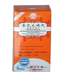 参芪大补丸 CODONOPSIS & ASTRAGALUS COMBINATION (SHEN QI DA BU WAN Functions and indications: A general tonic for qi, blood, ying and wei qi. Useful for general debility, fatigue, poor digestion due to spleen and stomach deficiency, and blood deficiency. Will help strengthen immune response. Ingredients: Tang shen root, Milk-Vetch root Contents: 200 pills (160mg each) Directions: Take 8 pills 3 times a day as a herbal supplement. Warning: Do not use if you are pregnant. This statement has not been evaluated by the Food and Drug Administration. This product is not intended to diagnose, treat, cure, or prevent any disease.
