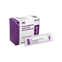 Compound Benzoin Tincture Swabsticks The Tincture of Benzoin is an antiseptic preparation which protects the skin from adhesive or harsh body fluids. Reduces skin irritation for patients with frequent dressing changes and forms a protective film on the skin. Excellent for use in post-op wound dressing Ideal for hyperalimentation dressing kits. Each packette contains 1 swabstick. 77%% Alcohol.