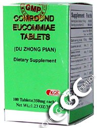 This is a patent remedy based on the experimental formula "Fufang Duzhong Pian (Compound Cortex Eucommia Tablets), which is used to lower blood pressure for cases of hypertension due to deficiency of the kidney with hyperactive liver yang, marked by headache, dizziness, tinnitus, blurred vision, heaviness of the head, palpitation, restlessness, soreness and weakness of loins and knees, dry throat and mouth.