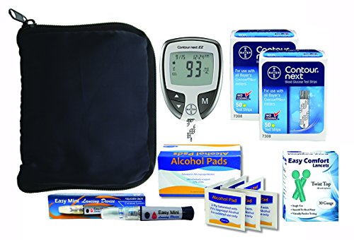 Contour Next Diabetes Testing Kit - Contour Next Ez Meter, 100 Bayer Contour Next Test Strips, 100 30g Easy Comfort Lancets, 1 Easy Mini Lancing Device, 100 Alcohol Prep Pads