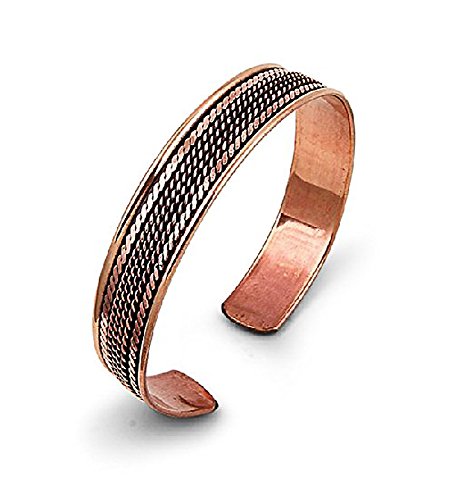 This bracelet is made of pure Copper with tiny magnets attached on both its edges. Since Roman Times, COPPER and MAGNETS are believed to be instrumental in affording relief to ARTHRITIS & RHEUMATIC conditions. Regular use of any metal polish will enhance the natural luster of Pure Copper.