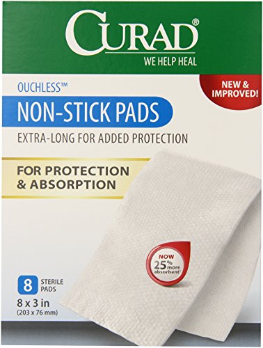 - Each box contains 8 sterile non-stick pads, 8" x 3"