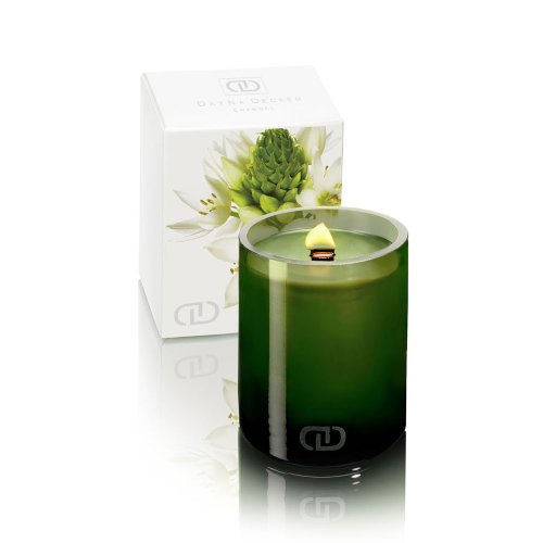 Naturally Chic and embellished with a beautiful hand blown glass that mirrors nature, this Chandel is filled with our signature botanical oil and natura wax blend. Our proprietary EcoWood Wick adds an organic illumination and soothing crackling sound to enhance any environment.