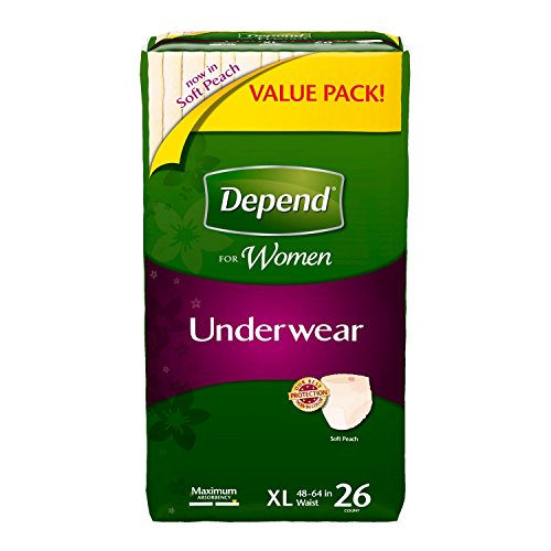 Depend Protective Underwear offer a comfortable and convenient solution to help maintain an active lifestyle. The gentle waist elastic allows pants to pull on and off like regular underwear. The waistband is stretchy, soft and quiet like regular underwear and includes a pink bar inside to indicate the rear of the underwear. Oval-cut leg openings protect against leakage while providing the same fit as regular women's underwear. Case includes two 26 ct value packs, 52 ct total.