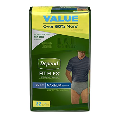 Depend FIT-FLEX Incontinence Underwear for Men, Maximum Absorbency, S/M, 32 Count Packaging May Vary