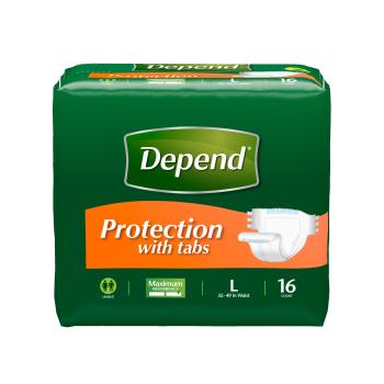 Depend Protection with Tabs* Underwear has soft leakage barriers to guard against side leakage and a wetness indicator line so you know when it’s time to change. This easy-to-change absorbent garment also has six Easy Grip tabs for a customized fit that is more like underwear and less like adult diapers. Depend Protection with Tabs* Underwear gives you maximum absorbency protection for maximum confidence in handling incontinence. So, feel free to get out and enjoy your life with a great product for men and women from Depend.