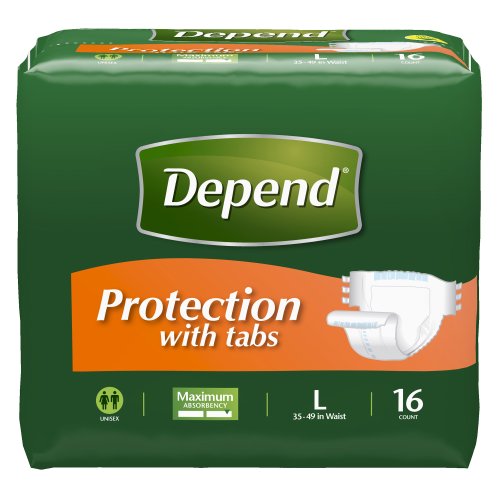 Depend Protection with Tabs Maximum Absorbency, Large, 16 Count