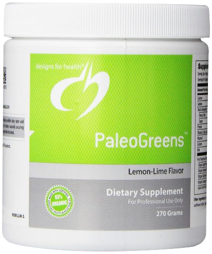 PaleoGreens is the great tasting Designs for Health greens food made with over 90% organic ingredients. The vegetable, fruit, and berry ingredients are brightly colored and non-oxidized, as the powders are protected from heat, UV light and moisture from start to finish
