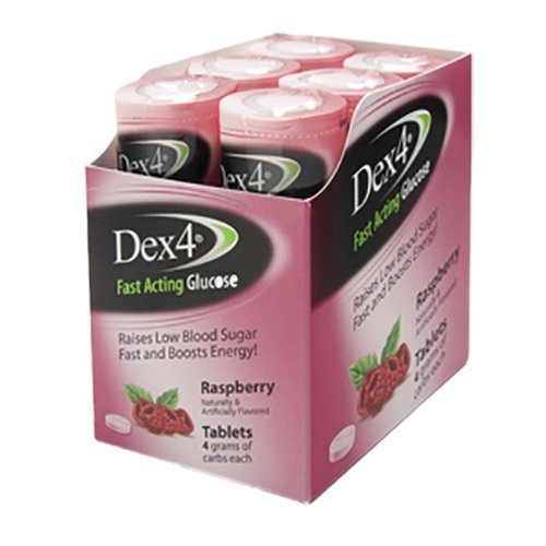 Dex4 glucose tablets raise low blood sugar fast and boost energy. They're great to correct mild and moderate episodes of hypoglycemia. Dex4 glucose tablets taste great and have 4 grams of carbs per tablet. They are fat free, sodium free, caffeine free and gluten free.