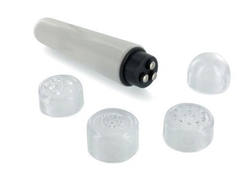 Only 4 in length, pocket sized massager is discrete, yet powerful. Battery operated by one AA (not included), amazingly quiet. Comes with four interchangeable heads of varied texture. Ships in sealed manufacturer's retail packaging. For novelty use only.
