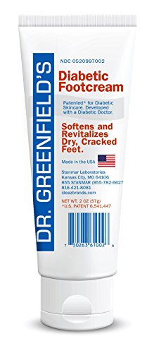 Dr. Greenfield's Diabetic FootCream helps reduce the risk of foot complications due to diabetes. The patented formula of emollients, vitamins, antioxidants and protein luxuriously moisturizes and softens feet while reducing painful cracking and dryness. Diabetic FootCream contains a gentle exfoliating agent to reduce calluses and tea tree oil to refresh and maintain a healthy skin environment. It is suitable for use on and between toes. Diabetic FootCream holds in moisture while allowing skin to breathe. It is a non-greasy cream that absorbs rapidly. After use Diabetic FootCream leaves skin feeling soft, smooth and silky.