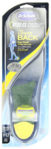 Clinically Proven: Lower back pain relief; Helps you stay on your feet longer; Podiatrist tested. Trim to fit! Shock Guard cushions & absorbs impact. You have low back pain (after being on your feet all day). You want relief from low back pain. You need Dr. Scholl's Back Pain Relief Orthotics. Comfort Spring: Cushions to provide comfort with every step; Helps to more evenly distribute body weight to reduce stress and shock to the heel. Shock Guard: Cushions and absorbs jarring shock with every step you take. Fit dress shoes, work shoes and casual shoes. Dr. Scholl's Back Pain Relief Orthotics design has been tested by podiatrists and clinically proven to relieve low back pain. Made in China.
