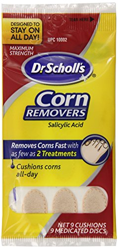 9 Pads; 9 Medicated Disks. Salicylic Acid. With ComfortPlus cushioning. Removes painful corns with as few as 2 treatments (7 Out of 10 users experience removal of the corn within 14 days with 2 treatments). Soft pad cushions corn from painful shoe pressure and friction. Medicated disk safely removes corn.