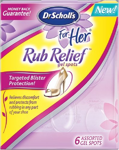 Dr. Scholl's® For Her Rub Relief® Gel Spots provide targeted blister protection, relieving discomfort and protecting from rubbing in any part of your shoe. With six cushioning gel spots in three different sizes, including two pre-cut to fit straps and thongs, you can get portable, on-the-go protection for any area experiencing pinching or friction. Plus, spots stay in place and are removable without damage to your shoe.