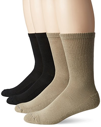 Dr. Scholl's Diabetes and Circulatory Basics Men's Crew Socks are perfect for diabetics and those with circulation issues. These socks feature a Soft-Stretch non-binding top that gently conforms to your legs and a smooth toe seam for all day comfort. Cushioned on the bottom to protect sensitive feet, these socks feature Free flow moisture dispersion technology to keep feet dry, and Silvadur antimicrobial technology to keep socks fresh. The socks are cotton-free to reduce moisture absorption and irritation and latex-free to avoid common allergic reactions. Fits men's shoe size 7-12. 4 pairs per package.