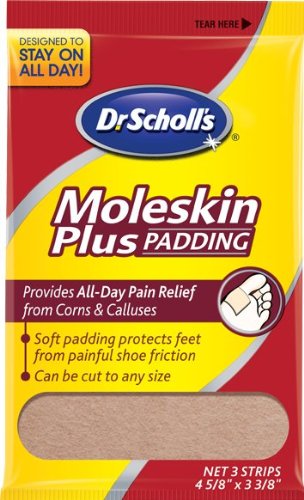 Soft cotton flannel padding can be cut to any size for all-day relief of painful corns, calluses and tender spots. Known worldwide for its effective cushioning properties, Moleskin Plus is soft, cotton flannel padding that protects feet from painful shoe friction. Helps prevent blisters.