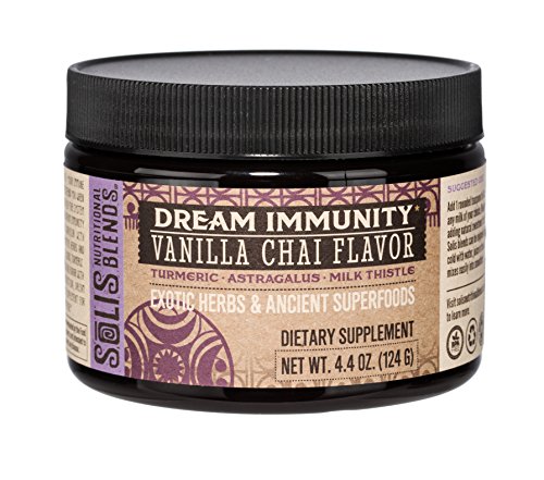 Your inner warrior force - your immune system - stands ready to defend you when you need it most. Why not help the system that protects you? Solis Dream Immunity nourishes your inner warrior with legendary immune-supportive herbs and superfoods like milk thistle, turmeric, and Fo-Ti. Featuring exotic Vanilla Chai flavor with hints of cinnamon and organic clove, Dream Immunity powder mixes instantly into hot and cold drinks, smoothies, yogurts and more!