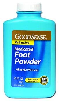 Good Sense Medicated Foot Powder absorbs wetness and leaves feet feeling dry and refreshed. Compare to Gold Bond.