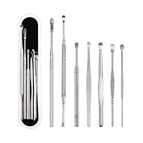 About the product ERGONOMICS DESIGN - Skid resistant design. Easy to control and more safe. Good way to removing ear wax that can effectively relieve itching and massage the ear canal while cleaning and allows you to remove annoying earwax and helps you maintain a healthy ear canal. ECONOMICAL - 7pcs with 8 tips earwax removal kits including a tool with a unique spring and spiral design, it's perfect for the entire family's ear hygiene. Perfect replacement for Q-tips. World widely used in doctor offices, medical clinics, and hospitals. PAIN-FREE - All tools are fully polished,all surfase smooth and rounded,to prevent any irritation or scratching. The handles are designed for a secure, non-slip grip. HIGH QUALITY - 100% medical grade stainless steel, easy to clean and sterilize and will last indefinitely. These tools are safe for personal and family use when used correctly. PROFESSIONAL PACKING - Come with a elegant storage box to store and carry your ear picks in style to keep it from dust. Suitable for at-home or professional use. And well-designed package can be a super valentines day gift for your loved ones.